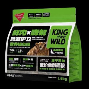 粗蛋白 ≥38%; 粗脂肪 ≥18%; 粗灰分 ≤9%; 粗纤维 ≤5%; 牛磺酸 ≥0.1%; 钙 ≥1.0%; 总磷 ≥0.8%; 水分 ≤10%