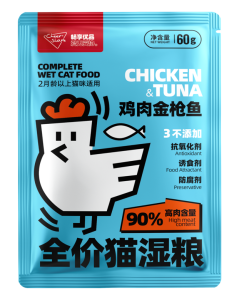 冻鸡胸肉50%,冻金枪鱼35.5%,冻鸡肝5%,水,鸡油1.8%,南瓜粉1.8%,山药1%,鱼油1%,紫薯粉0.8%,海带粉0.5%,纤维素0.2%
