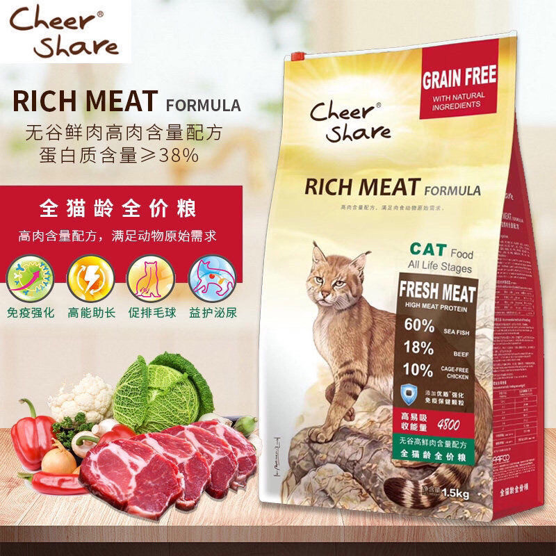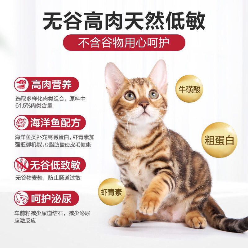 粗蛋白 ≥38.5% 粗脂肪 ≥18% 粗纤维 ≤5% 牛磺酸 ≥0.1% 钙 ≥1.0% 总磷 ≥0.8%