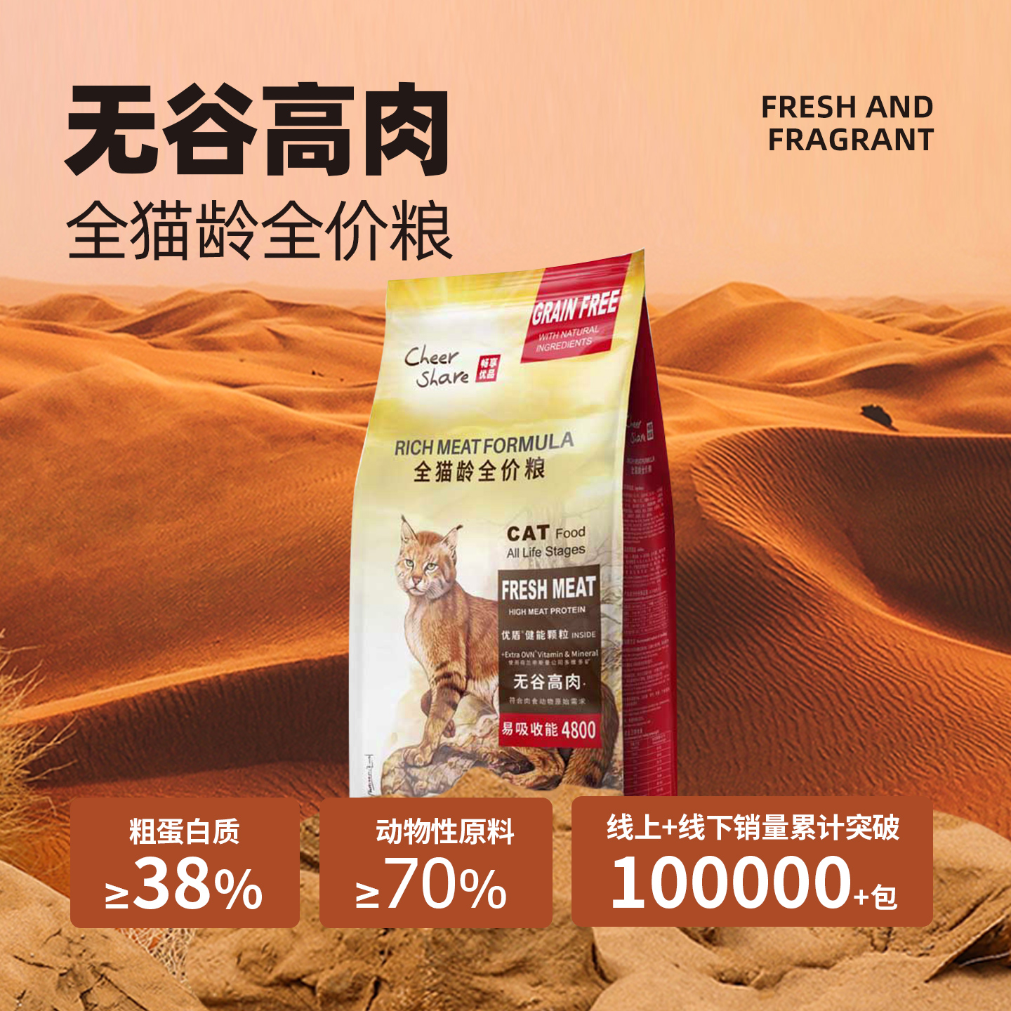 粗蛋白 ≥38.5%; 粗脂肪 ≥18%; 粗灰分 ≤9%; 粗纤维 ≤5%; 牛磺酸 ≥0.1%; 钙 ≥1.0%; 总磷 ≥0.8%; 水分 ≤10%